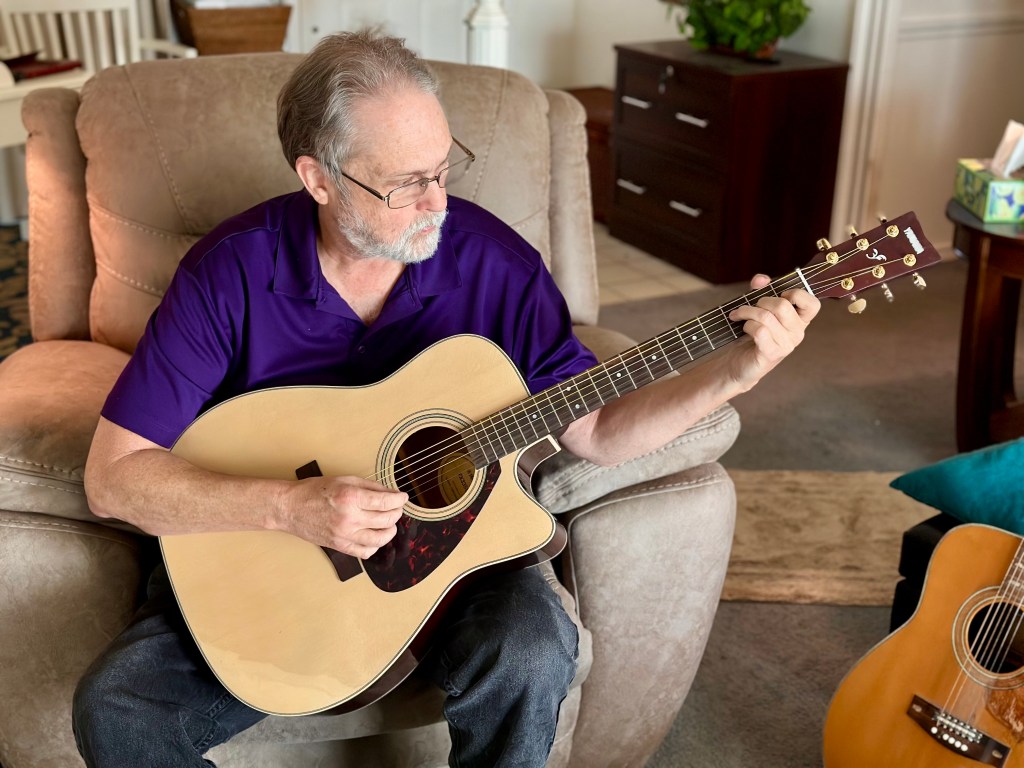 But holding this new instrument in the guitar store gently opened the door to that lifetime of memories without the pain. I remembered how much I loved the people I played for and how fortunate I was to be able to participate in music in general.